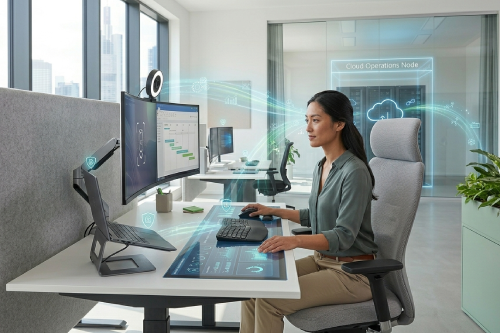 Die Anforderungen an den Arbeitsplatz haben sich grundlegend verändert. Ob im Büro, im Homeoffice oder hybrid – Mitarbeiter erwarten flexible, leistungsstarke und vor allem sichere Lösungen. Wir beseitigen veraltete Hardware, komplizierte Zugänge und Sicherheitslücken, die Ihre Produktivität bremsen. Unsere umfassenden Arbeitsplatzlösungen verbinden modernste Hardware mit nahtloser Cloud-Integration und sorgen dafür, dass Ihre Mitarbeiter sich auf ihre Arbeit konzentrieren können, statt auf IT-Probleme. Wir schaffen somit ein durchgängig effizientes und sicheres Arbeitsumfeld – von der Anschaffung bis zum Cloud-Betrieb.
